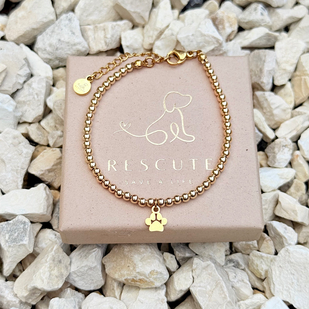 Entdecke unser Pfotenarmand aus 14k vergoldeten Perlen und Pfotenanhänger-Charm. 🐾