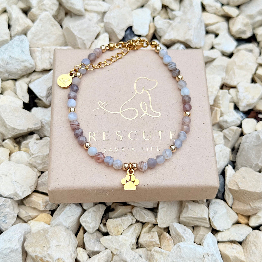 Wunderschönes Armband aus echten Natursteinperlen,vergoldeten Zwischenperlen und einem verstellbaren Edelstahlverschluss. Ein echter Hingucker – egal ob mit oder ohne Pfote.